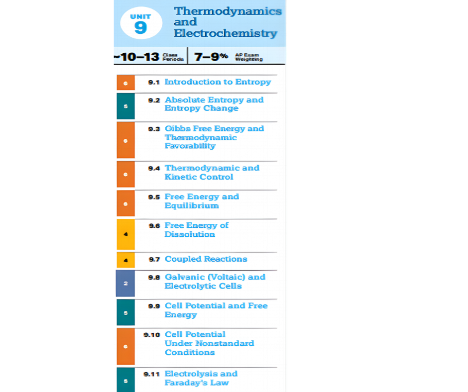 | Unit 9: Thermodynamics and Electrochemistry | 7–9% |